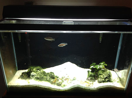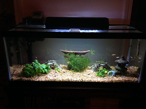 | 20 gal long tank, with: Aquaclear 30 filter, 50w heater,