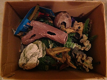 Various medium sized resin decor pieces, $5 each. Plastic plants and other decor, $1 each handful Buy it all: $20 |