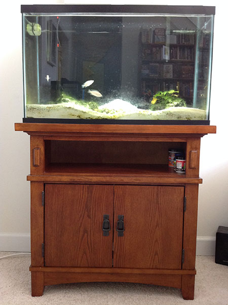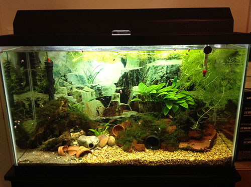 slate. Designed to resemble (my idea of) an Amazon stream. Fish (assortment of Glowlight Tetras,