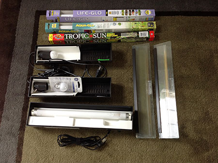 18" T8 lights for plants (new) $5 each SOLD Strip lights for 2.5 gal tanks: two with low light $10 one flourescent $12 15" flourescent strip light with bulb (fits 5gal tank) $15 Perfecto glass canopy for 5gal tank (Qty:2) $5 each |