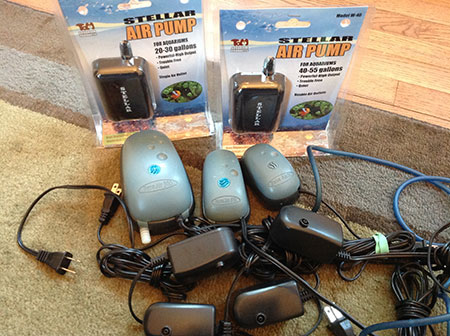 (NEW) Stellar 20-30gal pump - $5 SOLD (NEW) Stellar 40-50gal pump - $13 SOLD Rena Air 300 - $15 SOLD Rena Air 100 - $8 SOLD Rena Air 50 - $5 SOLD (qty:4) Whisper filter pumps - $2 each |